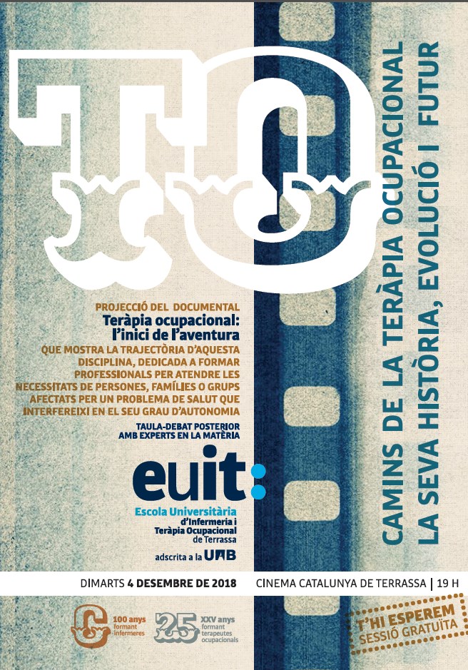 El dimarts 4 de desembre us convidem al Cinema Catalunya de Terrassa a gaudir de la projecció del documental “Teràpia ocupacional, inici de l’aventura”, emmarcada dins la celebració del Centenari de l’Escola i dels 25 anys en la formació de terapeutes ocupacionals.