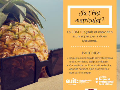 La Fundació per a la Docència Sant Llàtzer i el Restaurant Syrah et conviden a un sopar per a dues persones. Pots articipar al sorteig a través d’Instagram. Si ja t’has matriculat a l’EUIT o al... Segueix llegint