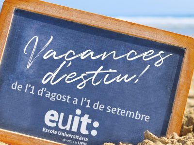 Vacances d’estiu Posted on31 jul. 2019Comments0 Us informem que l’EUIT romandrà tancada per vacances d’estiu des de l’1 d’agost fins l’1 de setembre (ambdós inclosos). Si voleu contactar amb nosaltres... Segueix llegint