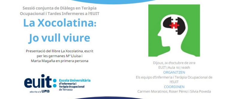 El dijous 24 d’octubre tornen les sessions conjuntes de “Diàlegs en Teràpia Ocupacional” i “Tardes Infermeres” a l’EUIT. L’objectiu d’aquest cicle de conferències-debat, dirigides a estudiants, professorat, professionals, i persones interessades, és donar a conèixer la infermeria i la teràpia ocupacional mitjançant el diàleg entre diferents experiències vitals, professionals, nacionals i internacionals. En aquesta ocasió, la jornada consistirà en la presentació del llibre “La Xocolatina: Jo vull viure”, que comptarà amb la presència de les autores, les germanes Maria Lluïsa i Marta Magaña. La presentació anirà a càrrec de la professora del Grau en Infermeria de l’EUIT Silvia Poveda.