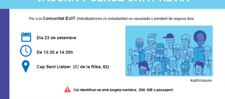 Si no estàs vacunat/da o tens la segona dosi pendent, vine al Cap Sant Llàtzer el proper 23 de setembre de 13:30 a 15:30 hores.