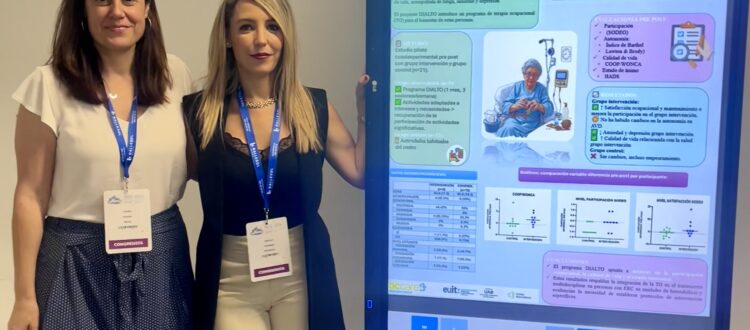 Por su parte, la Dra. Jéssica Garrido presentó el póster «DIALTO: Mejorando la participación ocupacional y la calidad de vida de personas con enfermedad renal crónica en hemodiálisis». Este trabajo se enmarca dentro de la investigación liderada por la Dra. Laura Vidaña, y se ha llevado a cabo en el Hospital Clínic con la colaboración de profesionales del centro como la Sra. Marta Quintela, jefa de Enfermería del Instituto Clínico de Nefrología y Urología del Hospital Clínic de Barcelona.